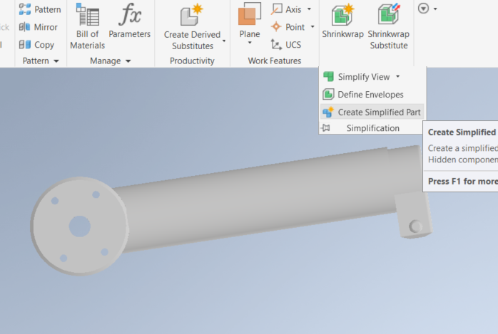 위처럼 [Assemble] > [Simplification] > [Create Simplified Part]로 저장하면 똑같은 모델링이 ipt파일로 저장된다.