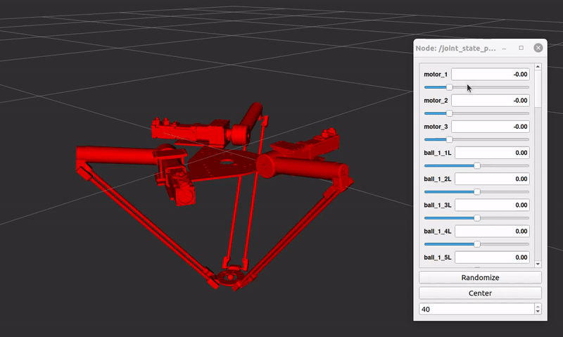 이후 display.launch를 실행시키면 rviz가 실행될 것이다. 이때 urdf에 문제가 없다면 모델이 정상적으로 나오고 joint slider를 움직였을 때 정상적으로 joint가 회전할 것이다. 물론 parallel robot의 경우 연결하지 않은 joint가 있어 일부 link가 분리되어 움직일 것이다.
