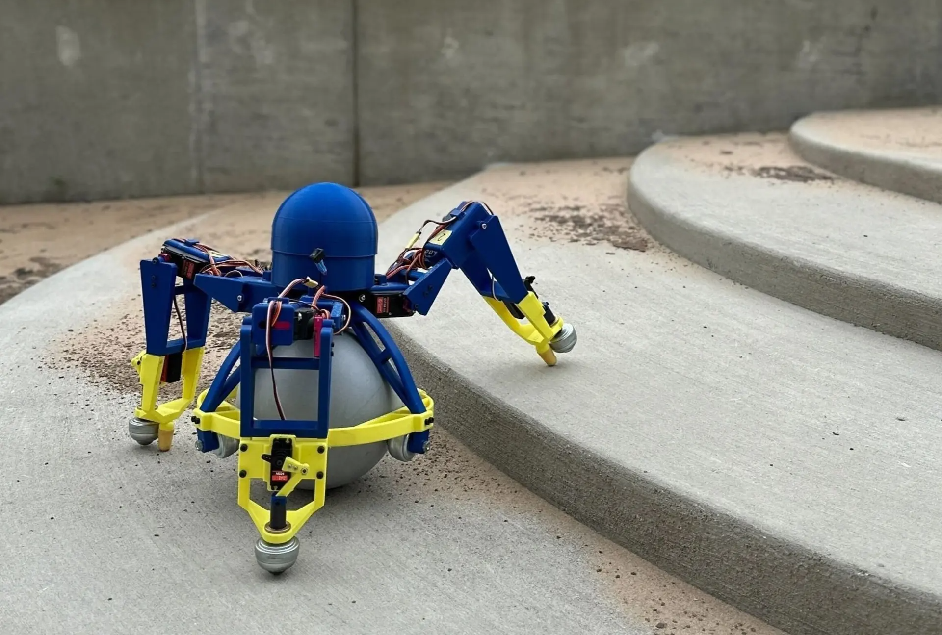 Omnidirectional tripedal robot scoots, shuffles and climbs