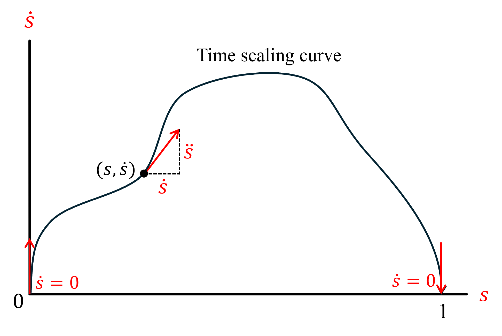 ●A tangent vector at the point of the curve represents $(\dot{s},\ddot{s})$, so it's direction contains the acceleration information.(Not good enough)