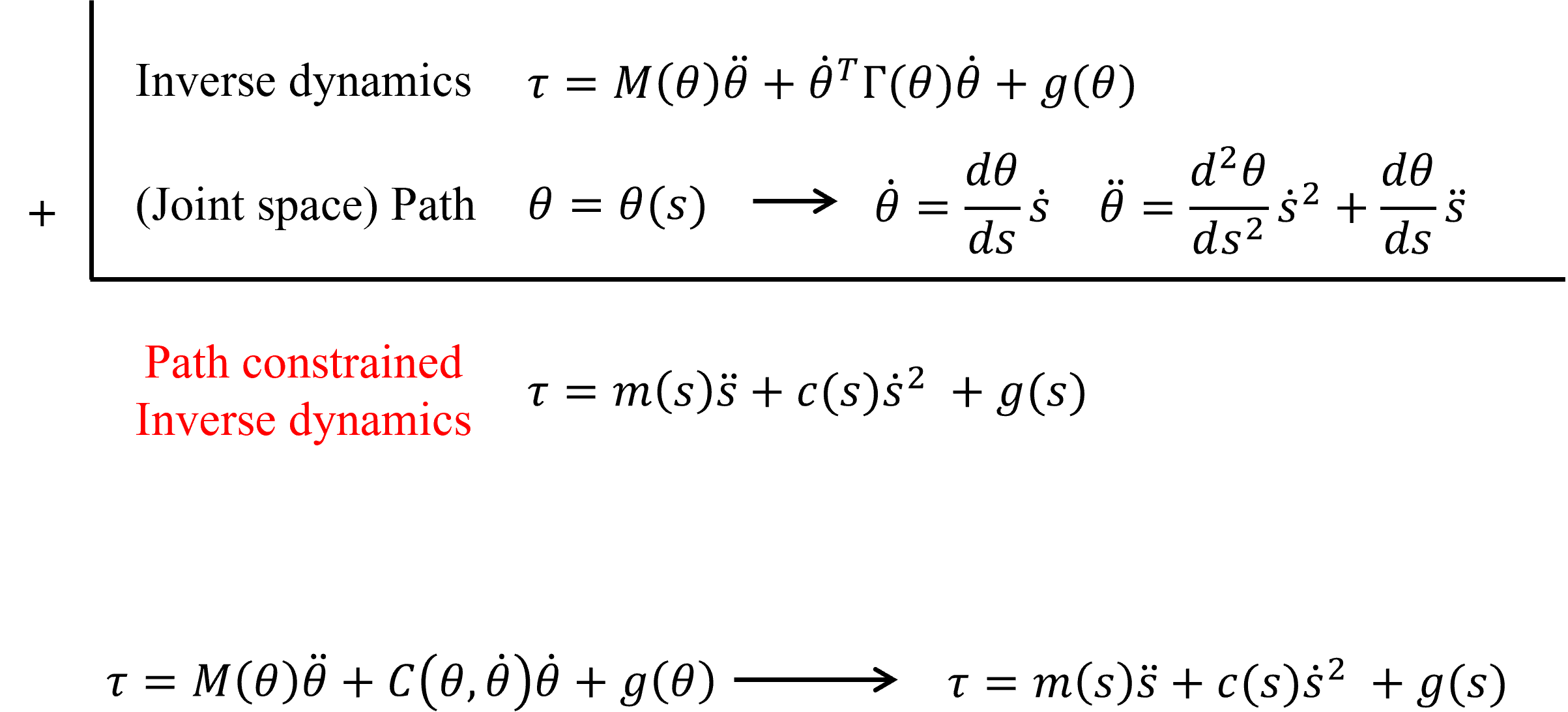 ●The robot's inverse dynamics equation when the robot follows the given path $\theta(s)$