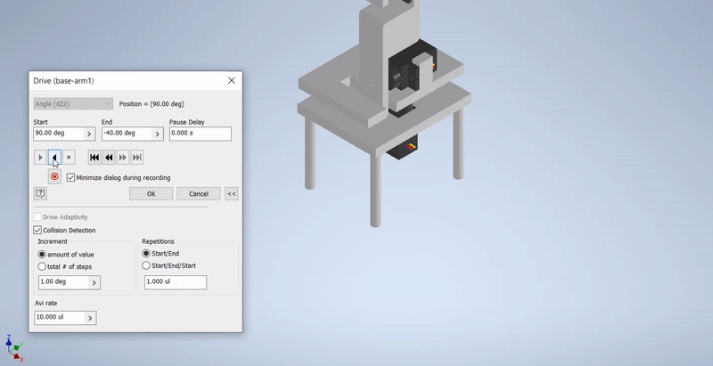 또 가동범위를 고려할 때 그냥 치수와 감으로만 하지 않고 inventor의 collision dectection 기능을 활용했다.