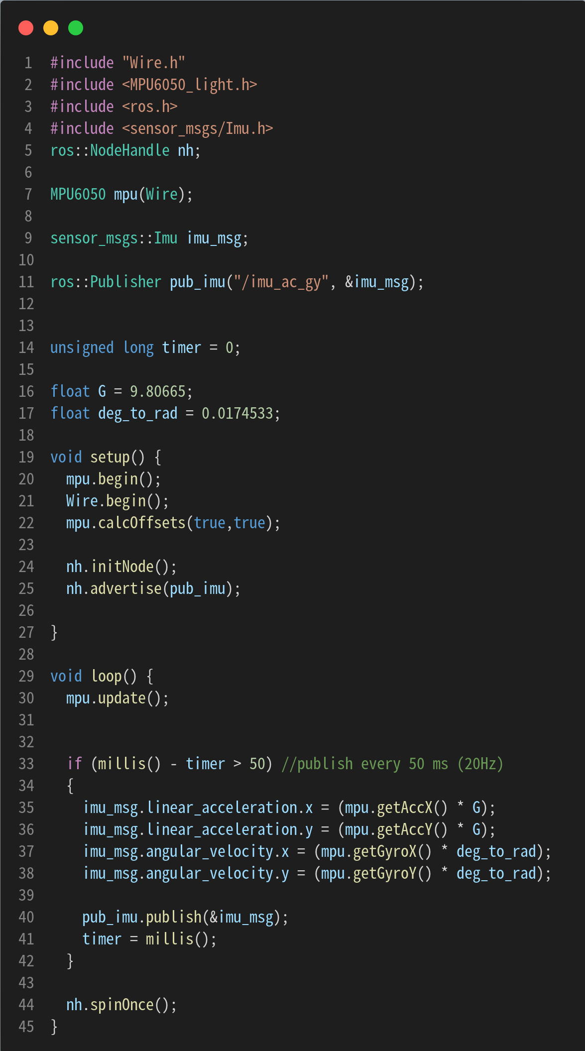 여기서 처음에는 라이브러리를 안 쓰고 직접 raw data를 처리해서 rosserial로 보내려고 했다.